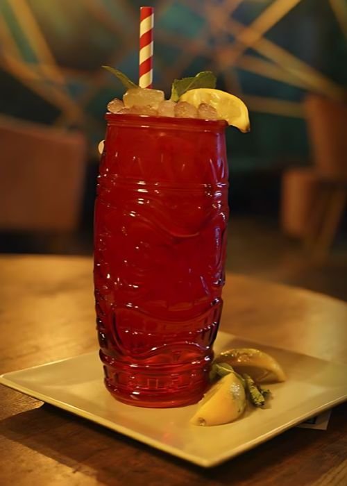 Naranja, Piña, Blue curacao, Vodka Especial.